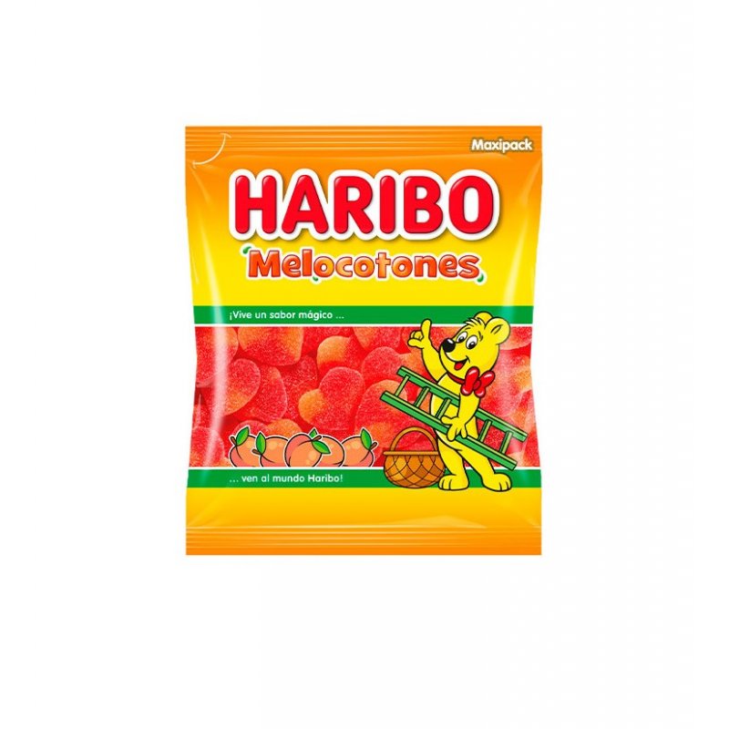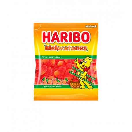 Corazones de Melocotón Haribo de color naranja y rojos con una capa azucarada...