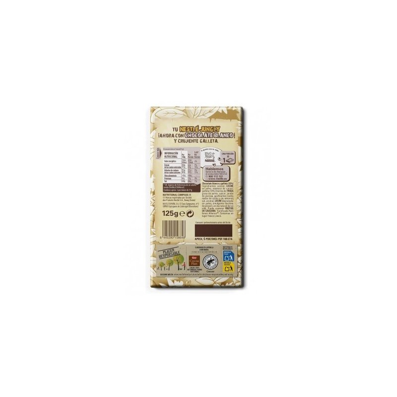 Con su presentación en tableta, Nestlé Jungly Blanco es ideal para compartir momentos dulces con amigos y familiares. ¡Una delicia que une a todos en torno al placer del chocolate!