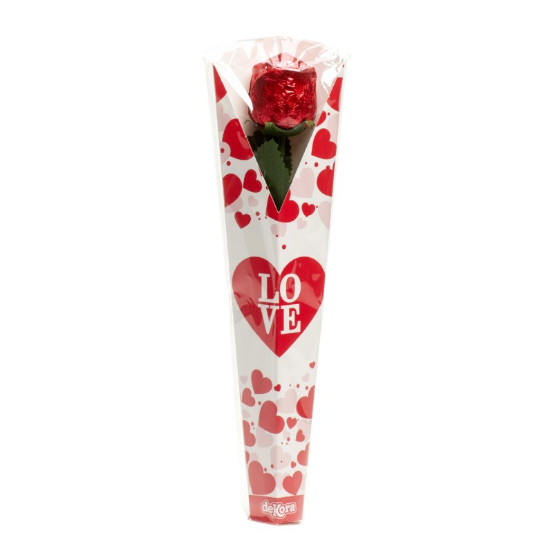 Con un envoltorio rojo, esta Rosa de Chocolate simula una verdadera, con su tallo y hojas en color verde. Algo que hace que todo aquel que ve la Rosa de Chocolate en nuestra tienda quiera comprarla sin pensarlo dos veces.